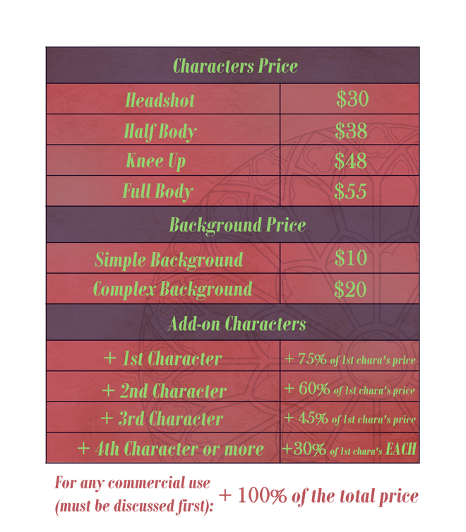 • The slots for regular commissions are limited to 7 per month and unlimited on Kofi.